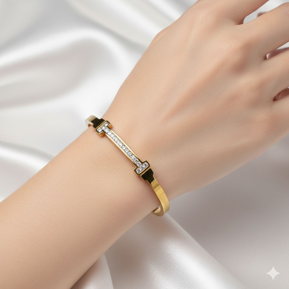 Κομψό βραχιόλι από ανοξείδωτο ατσάλι, διακοσμημένο με μια λεπτή μπάρα στο κέντρο, στολισμένη με λαμπερά ζιργκόν που χαρίζουν διακριτική πολυτέλεια. Ο minimal σχεδιασμός του το καθιστά ιδανικό για καθημερινή χρήση, ενώ μπορεί να φορεθεί και σε πιο επίσημες εμφανίσεις, προσθέτοντας μια εκλεπτυσμένη λάμψη. Ευκολοφόρετο και ανθεκτικό, διατίθεται σε χρυσό & ασημί, προσφέροντας ευελιξία για κάθε στυλ. Ιδανικό τόσο για layering όσο και για να φορεθεί μόνο του ως statement κομμάτι.