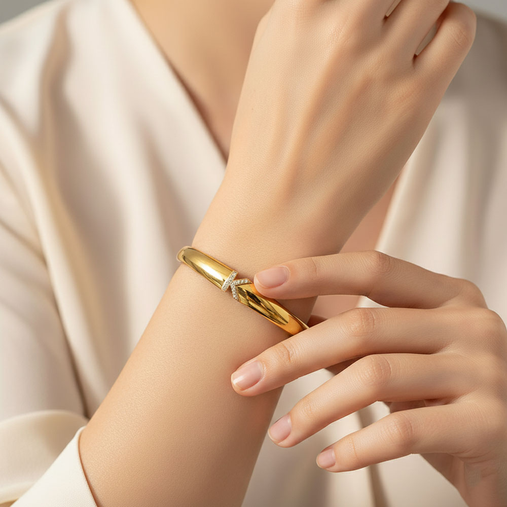 Κομψό και μίνιμαλ βραχιόλι από ανοξείδωτο ατσάλι, διακοσμημένο με το γράμμα Κ σε λαμπερό σχέδιο με στρας. Η λεία, γυαλιστερή επιφάνειά του χαρίζει διαχρονική κομψότητα, ενώ ο απλός σχεδιασμός το κάνει εύκολο να φορεθεί καθημερινά ή σε πιο ιδιαίτερες περιστάσεις.Ανθεκτικό στη χρήση και το νερό, παραμένει πάντα λαμπερό χωρίς να μαυρίζει.Ιδανικό για προσωπικό στιλ, αλλά και ως δώρο με ξεχωριστή σημασία.