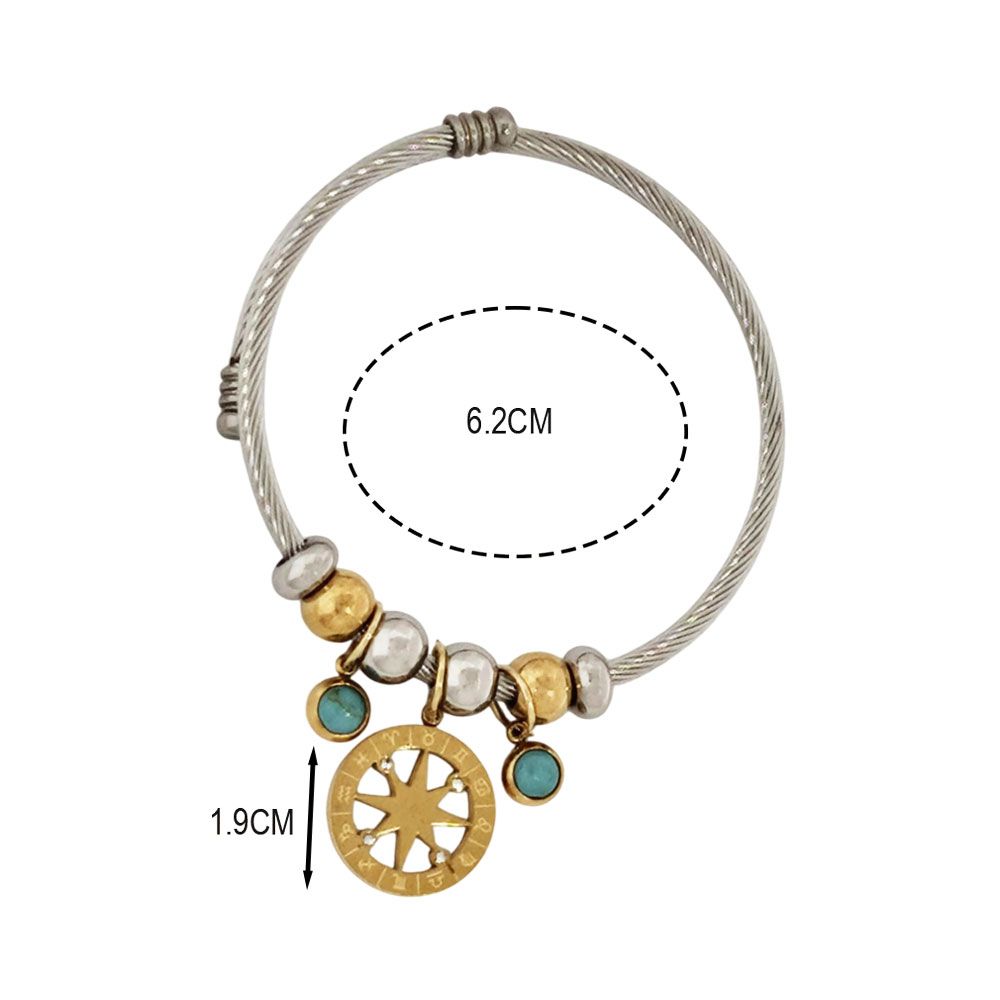 Γυναικείο Ατσάλινο Βραχιόλι/Χειροπέδα Με Αυξομείωση,Φιλικό Προς Το Δέρμα,Κατασκευασμένο Απο υποαλλεργικά Υλικά Που Δεν Μαυρίζουν Πυξίδα Με Ζωδιακο Κύκλο Σταθερο Ανοιγμα 6.2cm