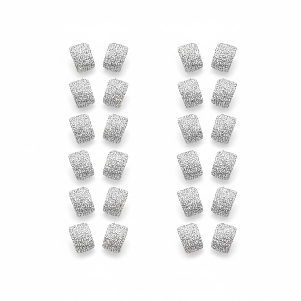 Εντυπωσιακό σετ σκουλαρικιών με φαρδιούς κρίκους διακοσμημένους με λαμπερά στρας, που χαρίζουν έντονη λάμψη και μοντέρνο fashion χαρακτήρα. Το σετ περιλαμβάνει 12 τεμάχια σε ασημί  απόχρηση, προσφέροντας πολλές επιλογές για stylish εμφανίσεις, ενώ το φαρδύ, καμπυλωτό τους σχήμα αγκαλιάζει κομψά το αυτί και δημιουργεί statement αποτέλεσμα. Ελαφριά και άνετα στη χρήση, με μέγεθος περίπου 2,5 cm, ιδανικά για καθημερινές αλλά και πιο βραδινές εμφανίσεις. Τα μισά έχουν ασημί κούμπωμα και τα μισά χρυσό.